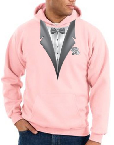 ✓ Cheap TUXEDO with WHITE FLOWER Tux Adult Pullover Hooded Sweatshirt Hoodie - Pink Buy Now!