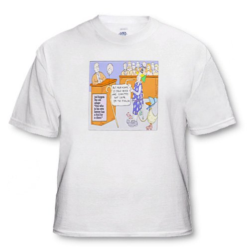 A Fool For A Lawyer T-Shirt is commercial quality high resolution heat transfers garment. 5.6-ounce, 50-50 cotton-poly; taped shoulder to shoulder, coverseamed ribbed collar, double-needle sleeve and bottom hem. Todler and infant t-shirts are 4.1-ounce. 100% ring spun combed cotton. Our image transfer produces professional matte finish with Premium Quality and Superior image resolution. Colors do not bleed and the image is sharp and crisp. Available in white, gray, blue and pink. Washing Instructions: 1. Turn Garment inside-out and machine wash in cold water. 2. Do not use Bleach or Fabric Softener. 3. Detergents with bleach additives are not recommended. 4. Tumble Dry on Warm. 5. Do not Iron. Do not Dry clean.