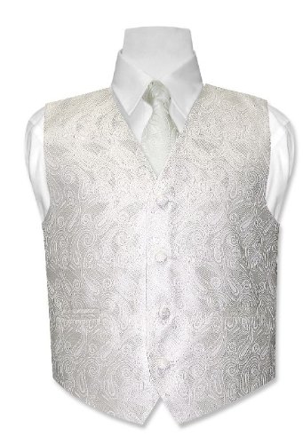 ✓ Cheap Covona BOY'S Solid OFF-WHITE Paisley Dress Vest NeckTie Set Buy Now!